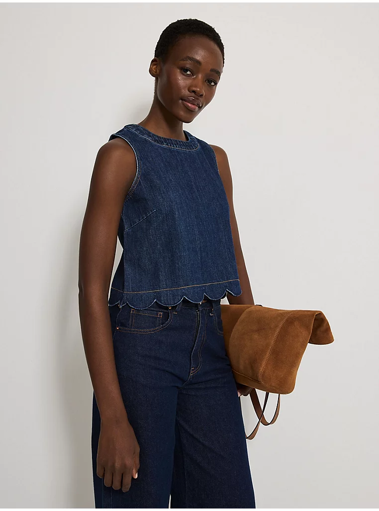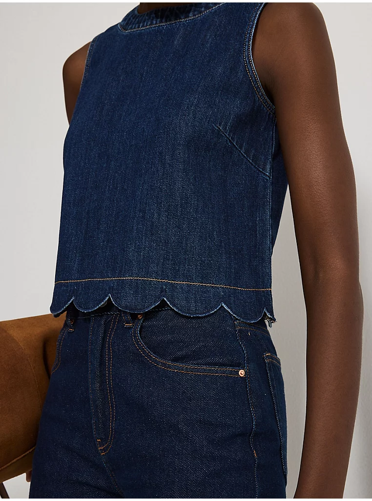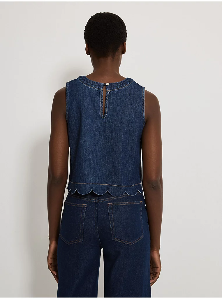 Dark Wash Scallop Edge Sleeveless Denim Top